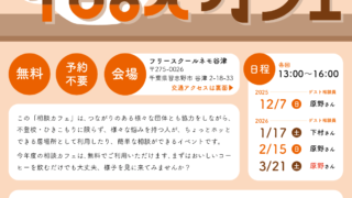 ホームページ 2018.07.032025.04.17 フリースクール ネモでは「居ること・在ること」を大事にしています。 活動や学びありきではなく、自分の土台作りこそがフリースクールの活動・学習のスタートです。 随時見学、入会OKです。 詳細を見る 「相談カフェ~不登校・ひきこもり、ほっと安心して話せる場~」を開催します 2月の予定(親サロン中止、ひきこもりサロンオンラインのみ) NPO法人ネモネット・フリースクールネモ 移転のお知らせ 「ハチドリ電力」への切り替えでネモネットをご支援いただけます 不登校親の手記を掲載 『不登校 Q&A「あしたは学校にいくよ」という子どものキモチ』刊行のお知らせ お知らせ一覧 Facebook page 目次 「相談カフェ~不登校・ひきこもり、ほっと安心して話せる場~」を開催します 2月の予定(親サロン中止、ひきこもりサロンオンラインのみ) NPO法人ネモネット・フリースクールネモ 移転のお知らせ 「ハチドリ電力」への切り替えでネモネットをご支援いただけます 不登校親の手記を掲載 『不登校 Q&A「あしたは学校にいくよ」という子どものキモチ』刊行のお知らせ わが子が不登校・ひきこもりになったら、親は誰でも慌てます。 ネモネットのスタッフは不登校・ひきこもりの子どもを持つ親です。 一緒に考えていきましょう。