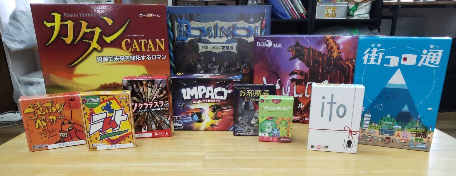 初心者から上級者まで楽しめるボードゲームがたくさんあるので、自分の好きなものや、やりたかったボードゲームも見つかるかも⁉︎