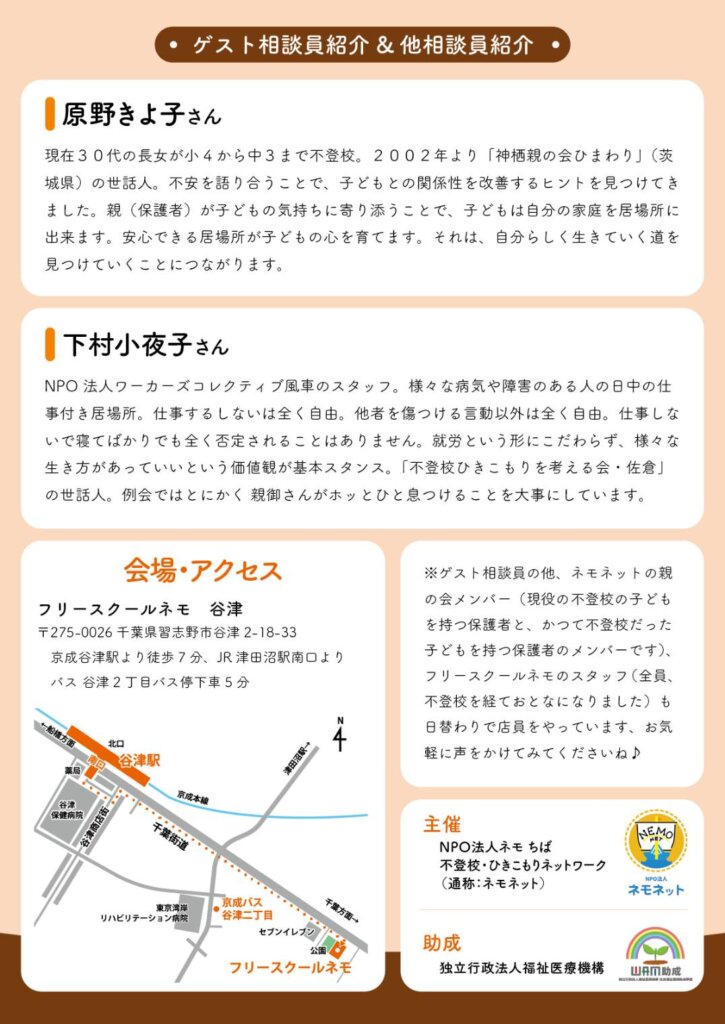 3/21(土) 13:00~16:00 (ゲスト相談員:下村さん→原野さんに変更)